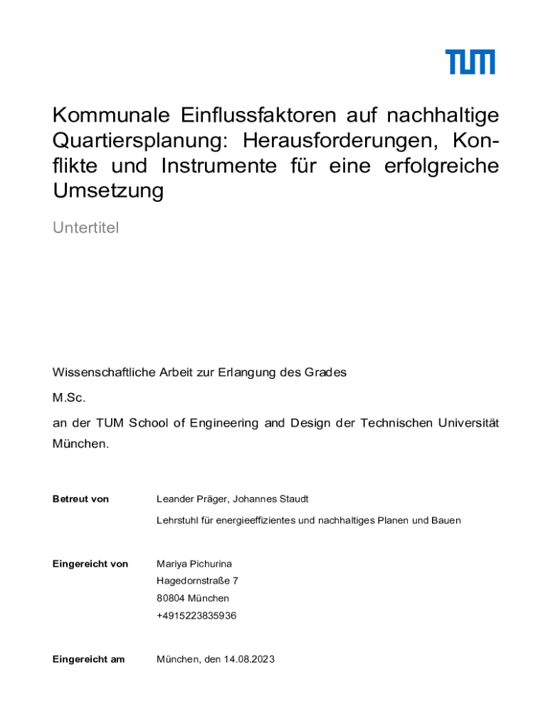 Quartiersplanung: Herausforderungen, Conflict UND Instrument for and erfolgreiche