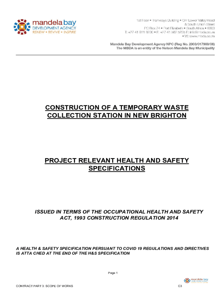 CONSTRUCTION OF A TEMPORARY WASTE COLLECTION STATION IN NEW BRIGHTONPROJECT RELEVANT HEALTH AND SAFETY SPECIFICATIONSISSUED IN TERMS OF THE OCCUPATIONAL HEALTH AND SAFETY ACT, 1993 CONSTRUCTION REGULATION