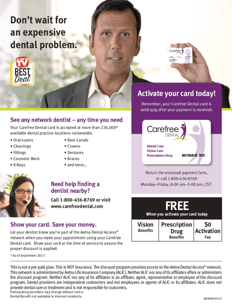 Remember, your Carefree Dental card is