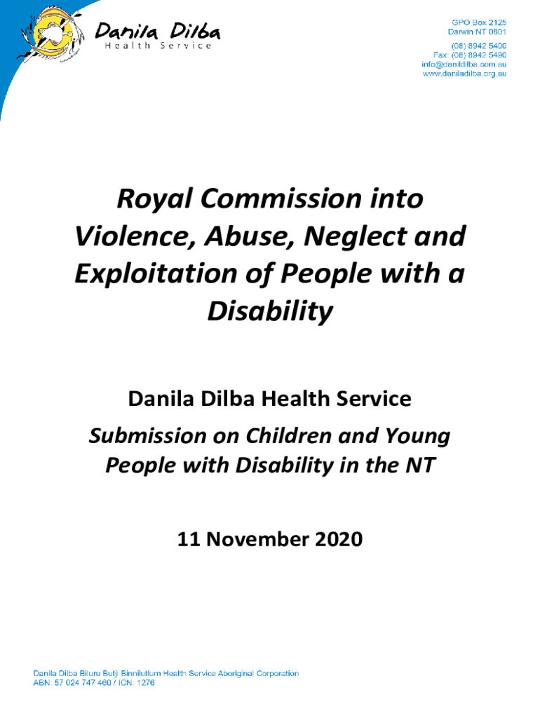 Royal Commission into Violence, Abuse, Neglect and Exploitation of People with a Disability Danila Dilba Health Service Submission on Children and Young People with Disability in the NT 11 November