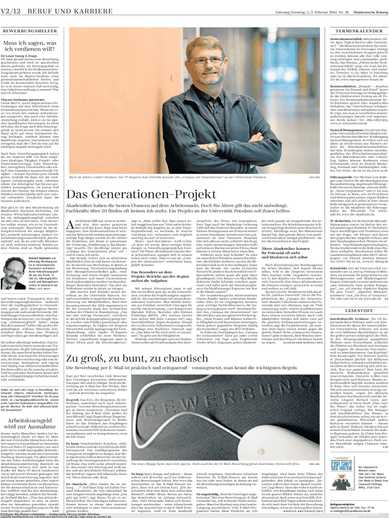 V2/12 BE RUF UND KARRIERESamstag/Sontag, 1./2. February 2014, NR. 26BEWERBUNGSHELFERTERMINKALENDER