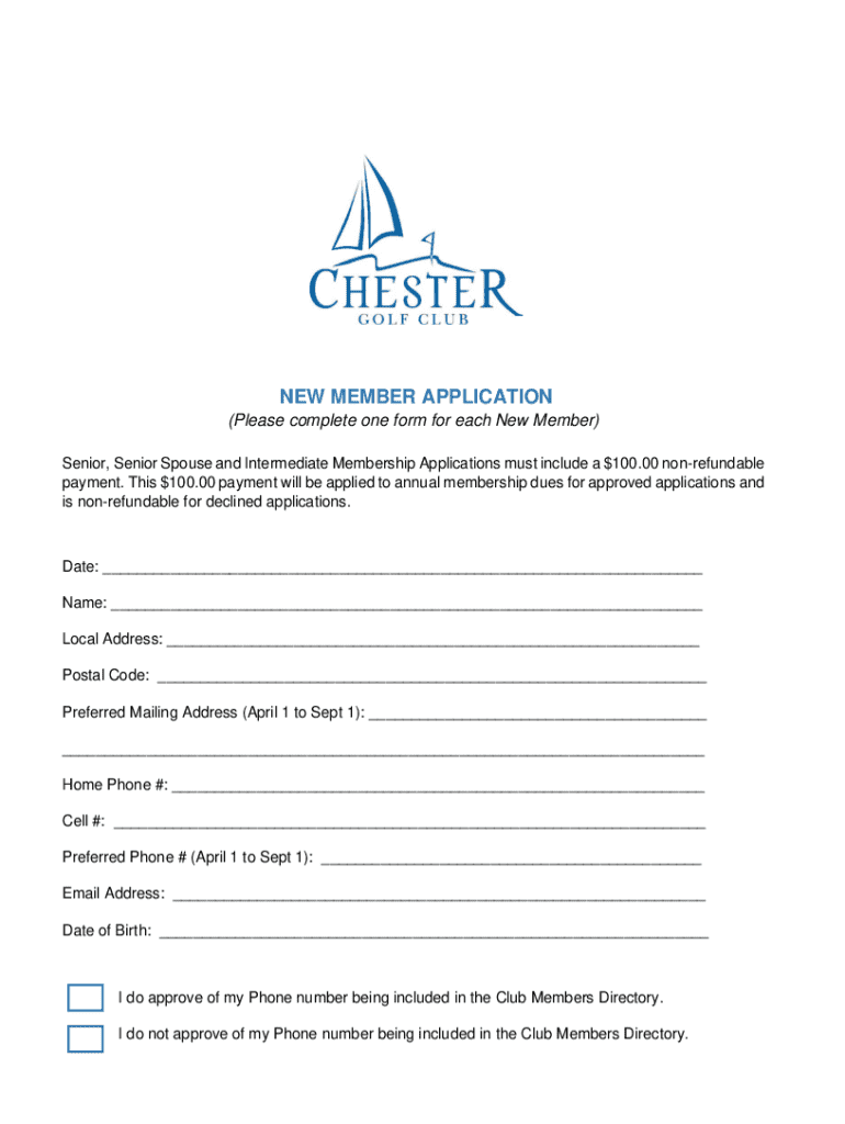 Apply for membership at Chester Golf Club with our New Member Application. Complete requirements for Senior, Spouse, Intermediate, or Junior membership.