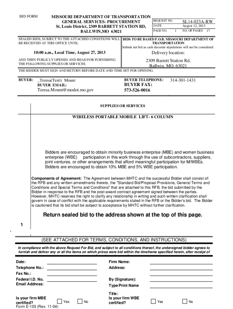 BID FORMMISSOURI DEPARTMENT OF TRANSPORTATION