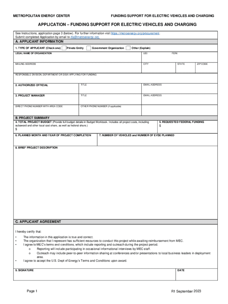 METROPOLITAN ENERGY CENTERFUNDING SUPPORT FOR ELECTRIC VEHICLES AND CHARGINGAPPLICATION FUNDING SUPPORT FOR ELECTRIC VEHICLES AND CHARGING See Instructions, application page 3 (below). For further