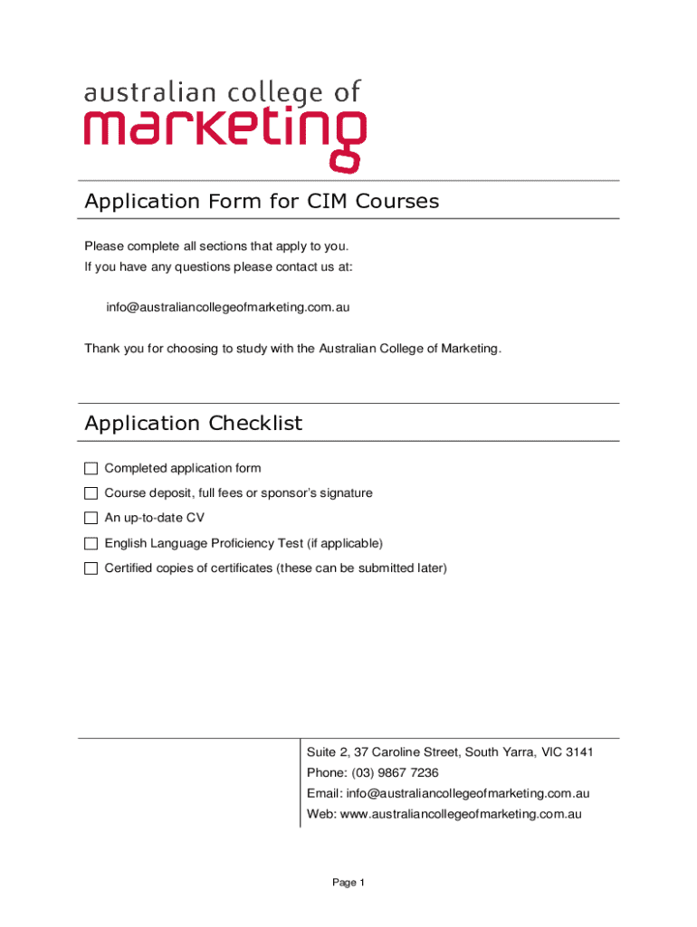 Get the free Application Form for Cim Courses