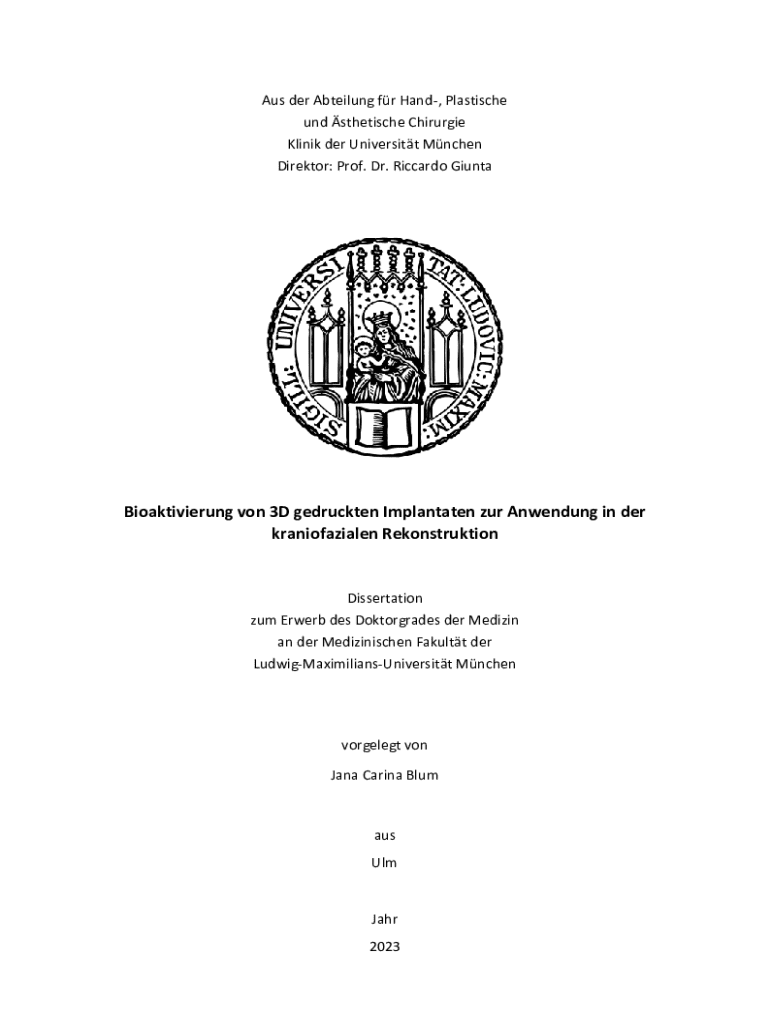 Director: Prof. Dr. Riccardo GiuntaBioaktivierung on 3D gedruckten Implantation our Attending in her