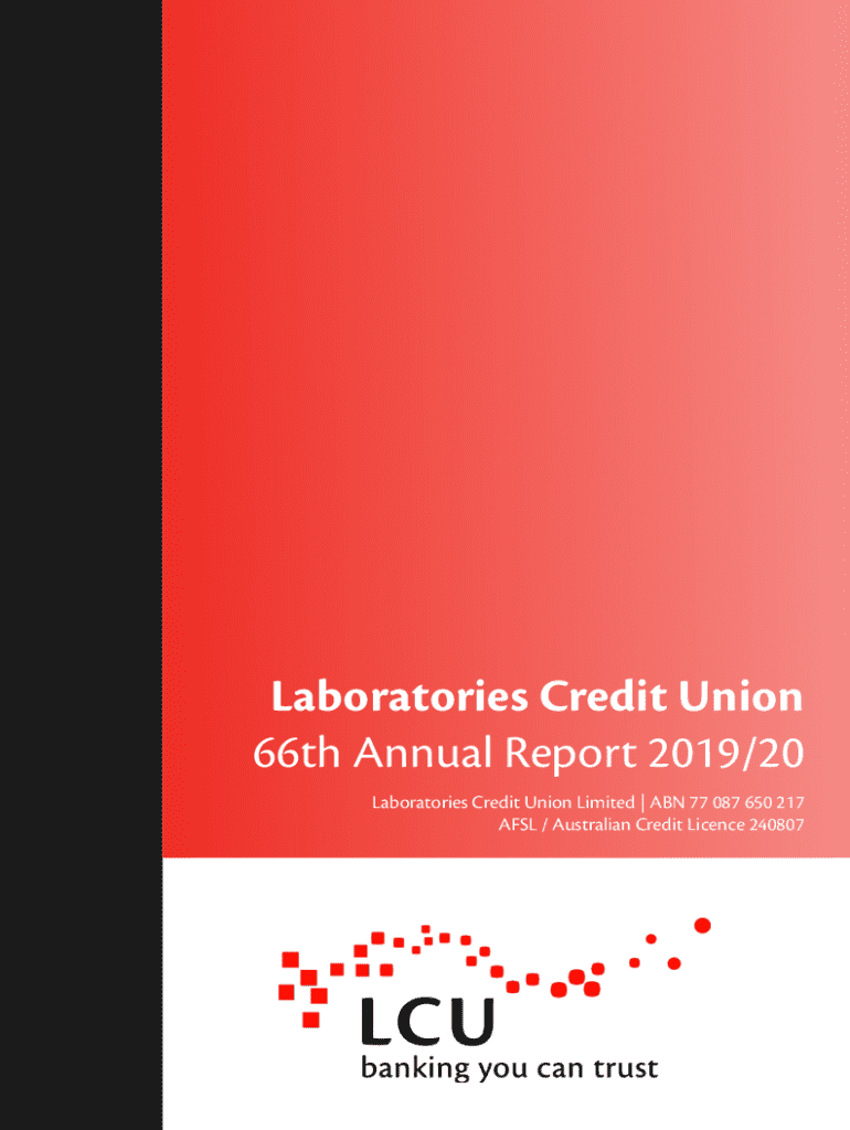 Laboratories Credit Union 66th Annual Report 2019/20 Laboratories Credit Union Limited | ABN 77 087 650 217 AFSL / Australian Credit Licence 240807Laboratories Credit Union Limited 2020 Annual Financial