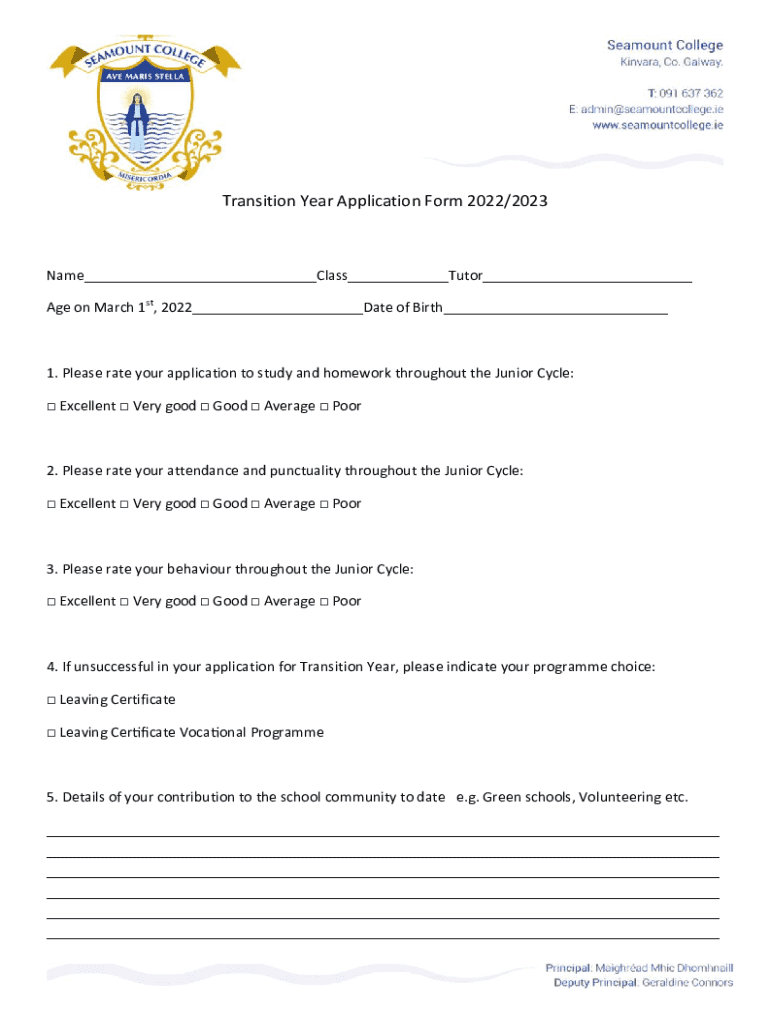 Get the free Transition Year Application Form 2022