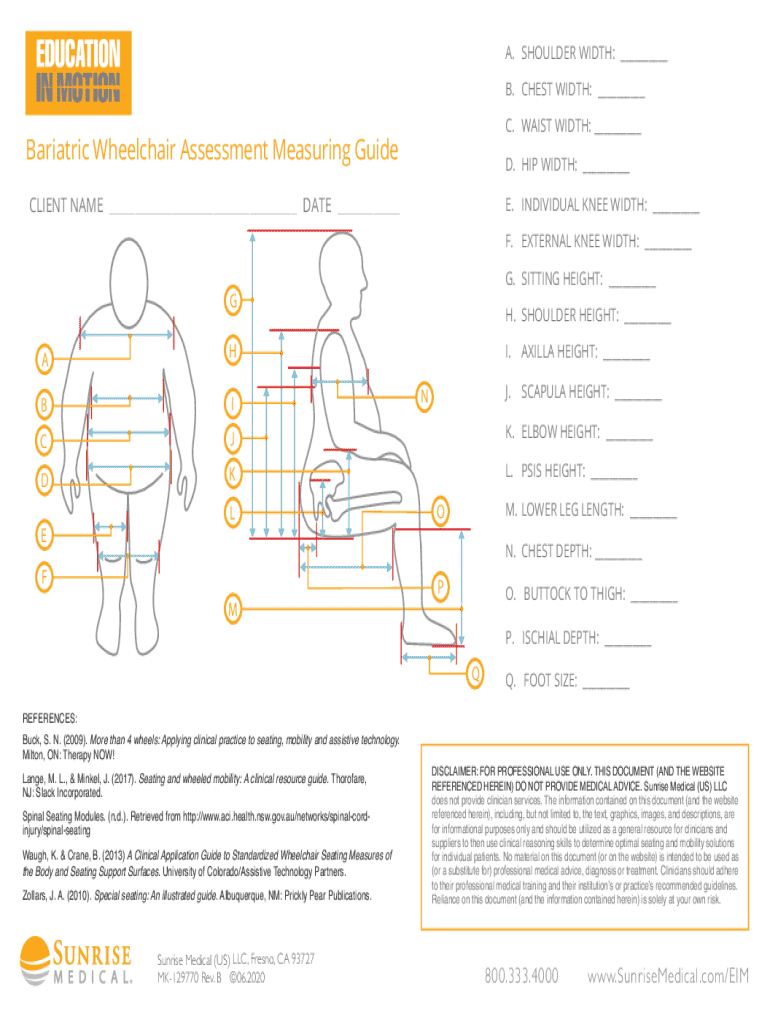 A. SHOULDER WIDTH: ___ B. CHEST WIDTH: ___ C. WAIST WIDTH: ___Bariatric Wheelchair Assessment Measuring Guided. HIP WIDTH: ___ E. INDIVIDUAL KNEE WIDTH: ___CLIENT NAME ___ DATE ___F. EXTERNAL KNEE