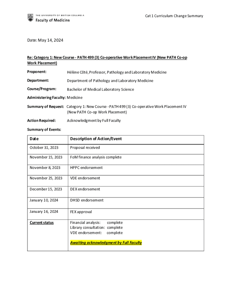 Cat 1 Curriculum Change SummaryDate: May 14, 2024,