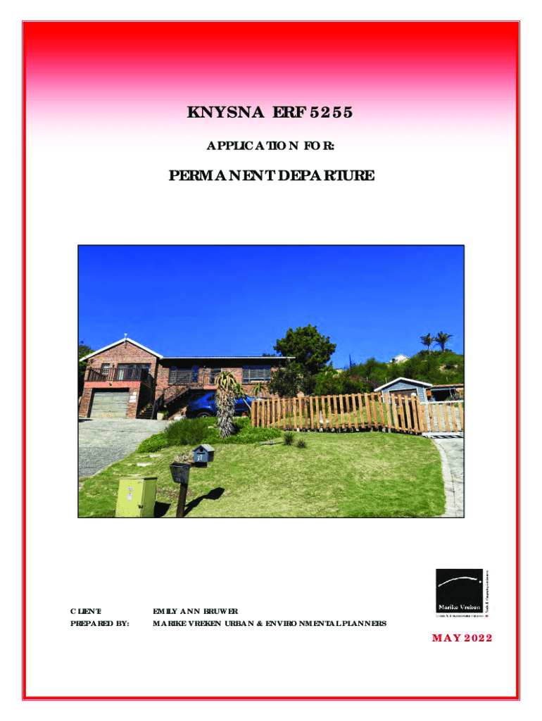 MARINE GREEN URBAN & ENVIRONMENTAL PLANNERS 2022KNYSNA ERF 5255: PERMANENT DEPARTURECONTENTS