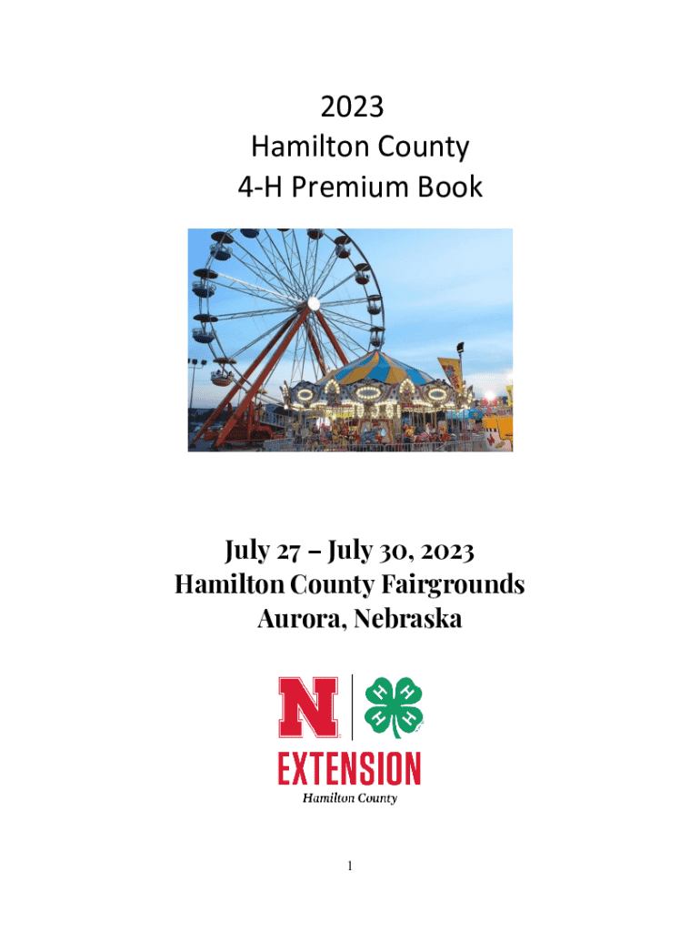 2023 Hamilton County 4H Premium Book July 27 July 30, 2023, Hamilton County Fairgrounds Aurora, Nebraska1STAFF Mariah Newer, Extension Educator, Lead Educator Emily Sold, 4H Extension Educator Hillary