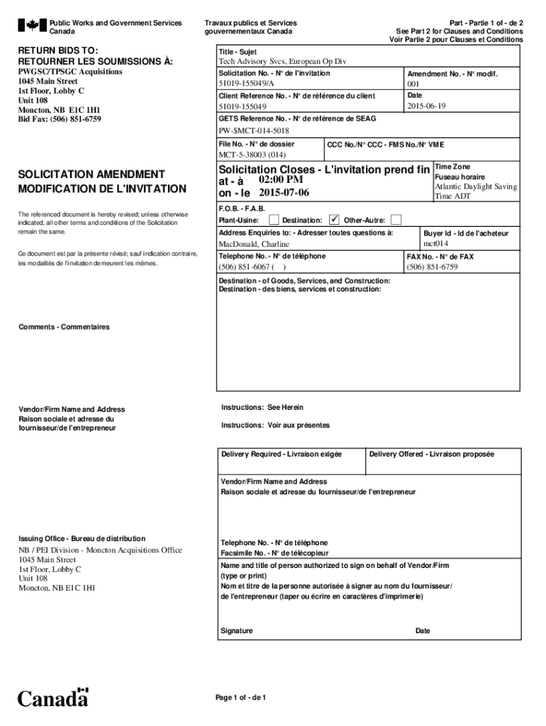 gouvernementaux CanadaPart Parties 1 of DE 2