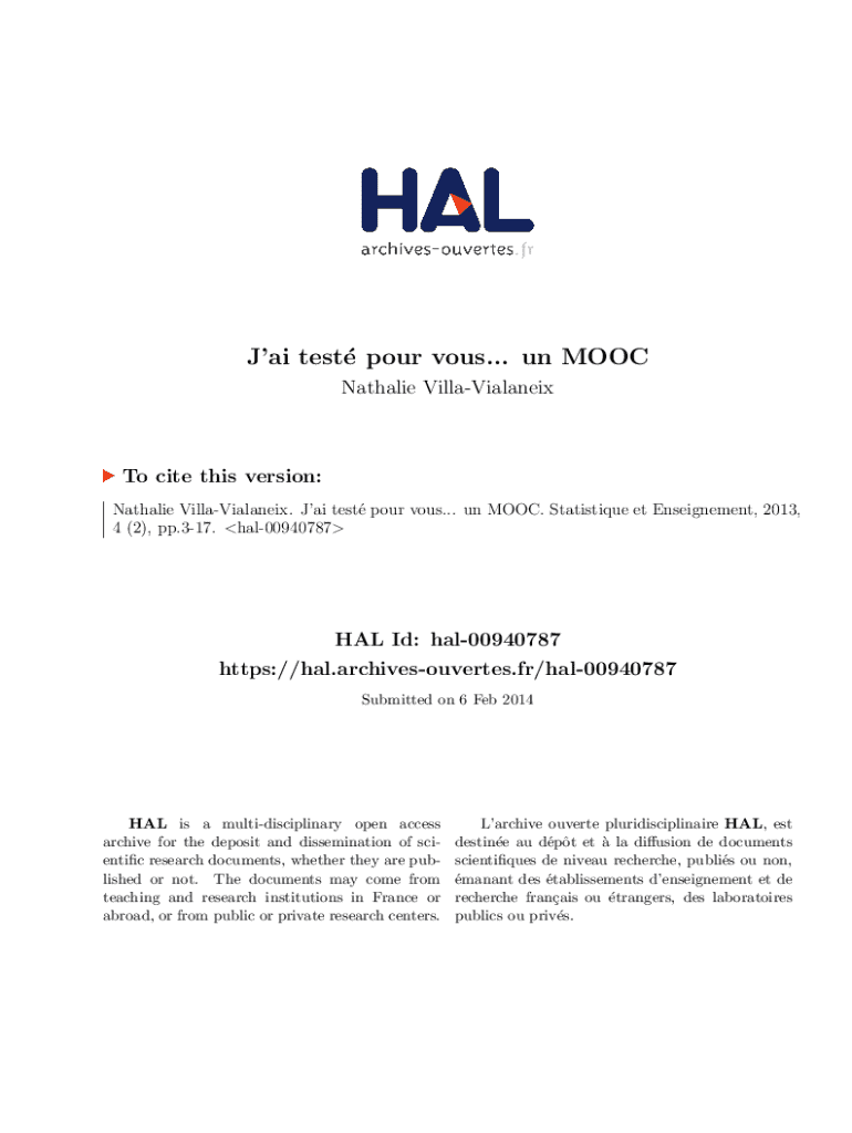 Nathalie VillaVialaneix. JAI test pour vows... un MOOC. Statistics et Engagement, 2013,