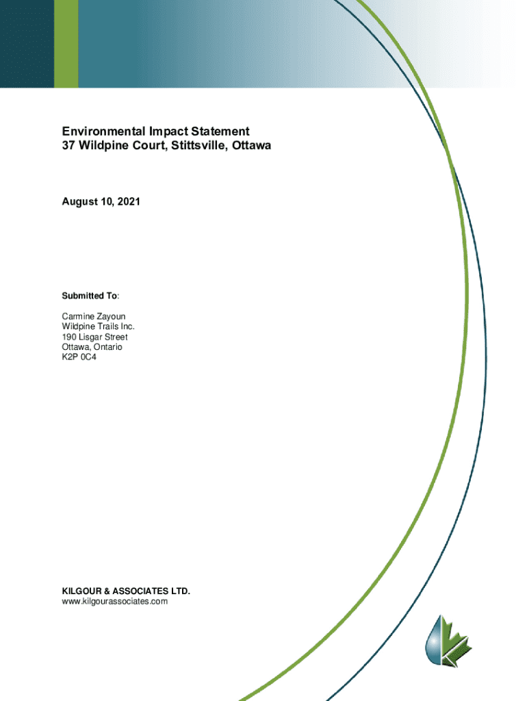 Environmental Impact Statement 37 Wildpine Court, Stittsville, OttawaAugust 10, 2021Submitted To: Carmine Zayoun Wildpine Trails Inc. 190 Lisgar Street Ottawa, Ontario K2P 0C4KILGOUR & ASSOCIATES