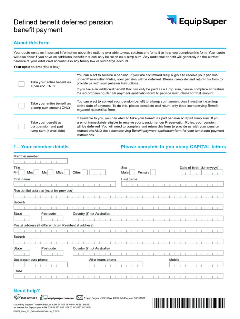 Get the free Defined Benefit Deferred Pension Benefit Payment Form