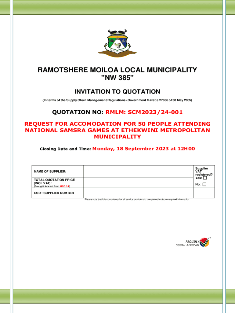 Get the free Quotation Invitation for Accommodation Services - ramotshere gov