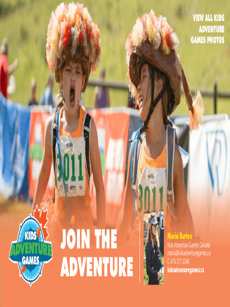 VIEW ALL KIDS ADVENTURE GAMES PHOTOSHOP THE ADVENTURE Maria BurtonKids Adventure Games Canada maria@kidsadventuregames.ca C: 416.571.3346 kidsadventuregames.sponsorship OPPORTUNITYALIGN WITH THE TOUGHEST