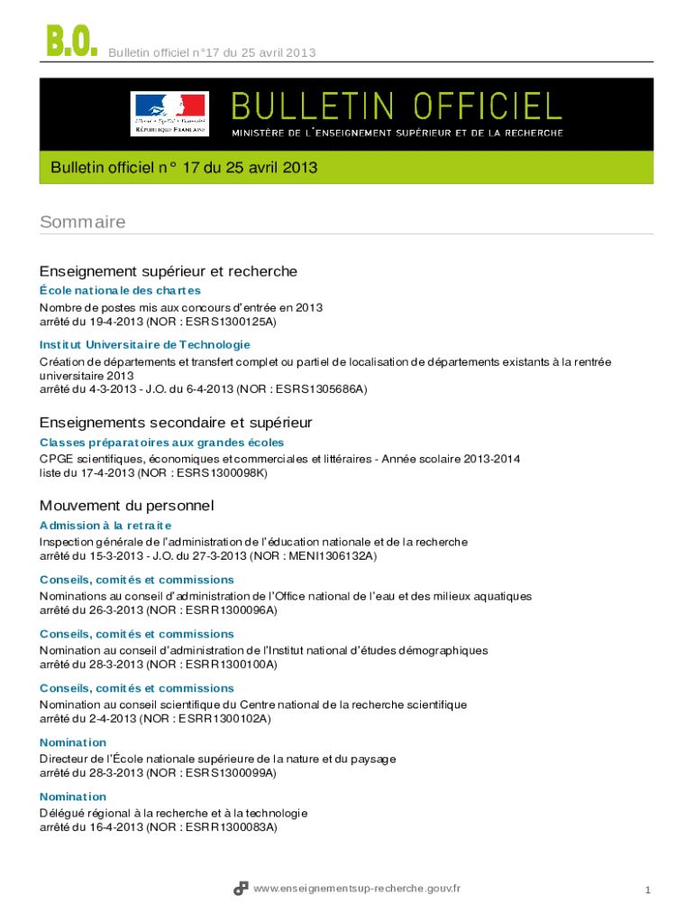 Bulletin official n17 Du 25 April 2013http://www.enseignementsuprecherche.gouv.fr
