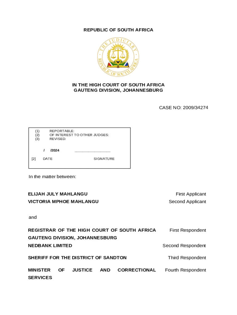 REPUBLIC OF SOUTH AFRICAN THE HIGH COURT OF SOUTH AFRICA