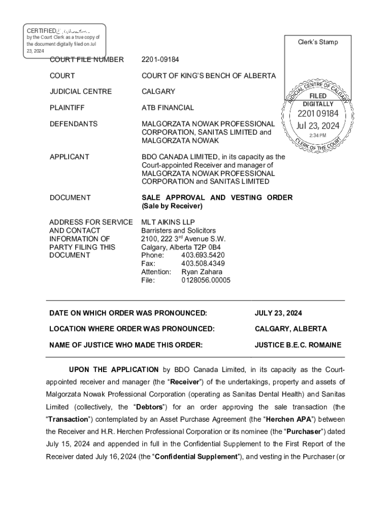 23, 2024Clerks StampCOURT FILE NUMBER220109184COURTCOURT OF KINGS BENCH OF ALBERTAJUDICIAL CENTRECALGARYPLAINTIFFATB