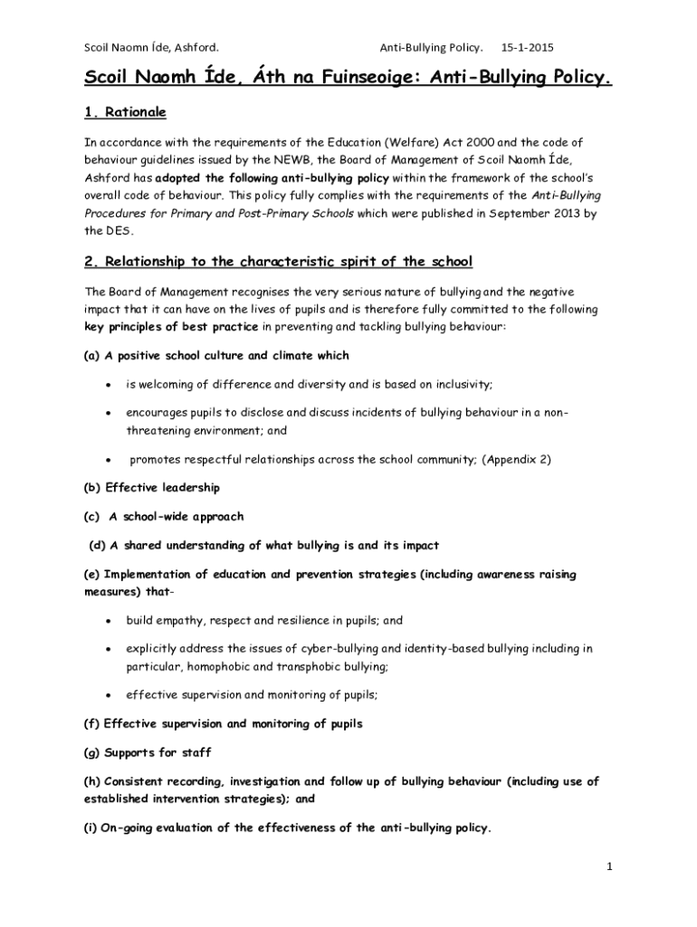 Get the free Anti-Bullying Policy Scoil Naomh Cholmcille