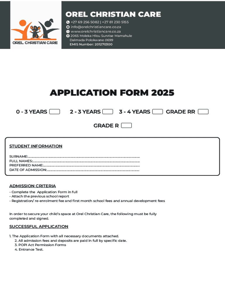 To fill out the Orel Christian Care application, applicants must complete a detailed form providing personal information, specific care needs, and any relevant documentation.