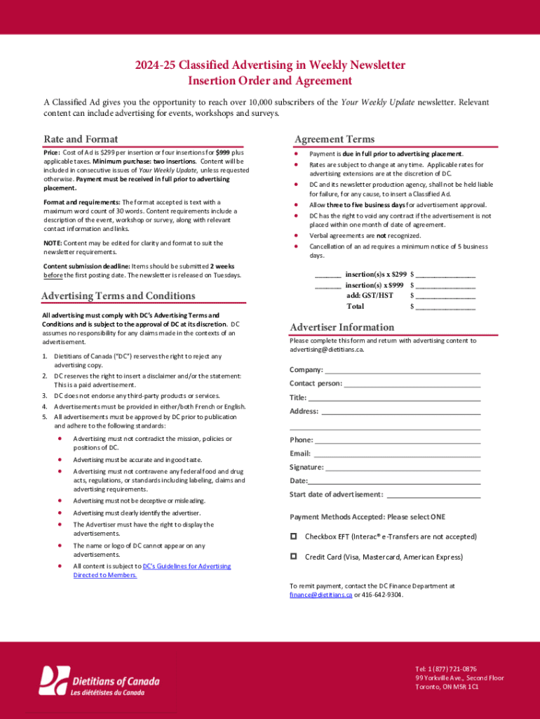 202425 Classified Advertising in Weekly Newsletter Insertion Order and Agreement A Classified Ad gives you the opportunity to reach over 10,000 subscribers of the Weekly Update newsletter. Relevant