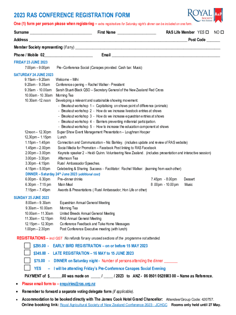 One (1) form per person please when registering extra registrations for Saturday nights dinner can be included on one form.