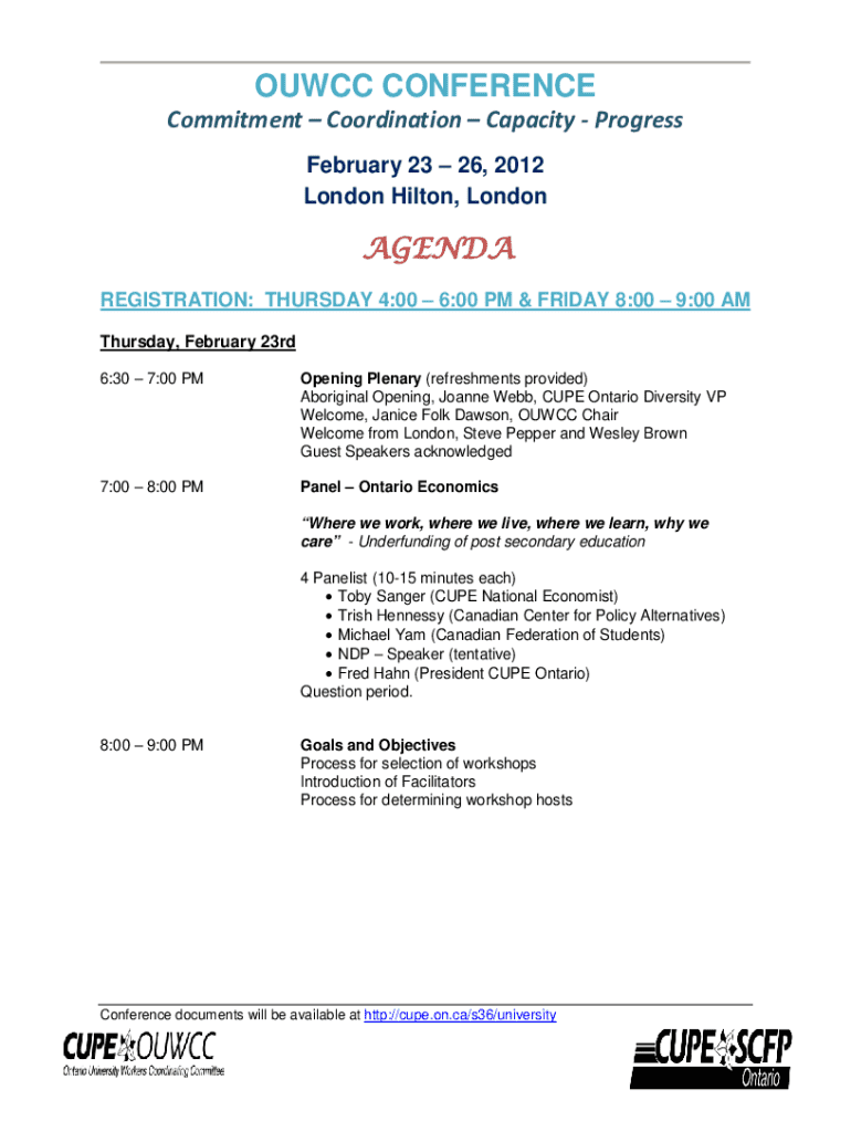 Register for the OUWCC Conference in London from February 23-26, 2012. Join discussions on education funding, social justice, and more.