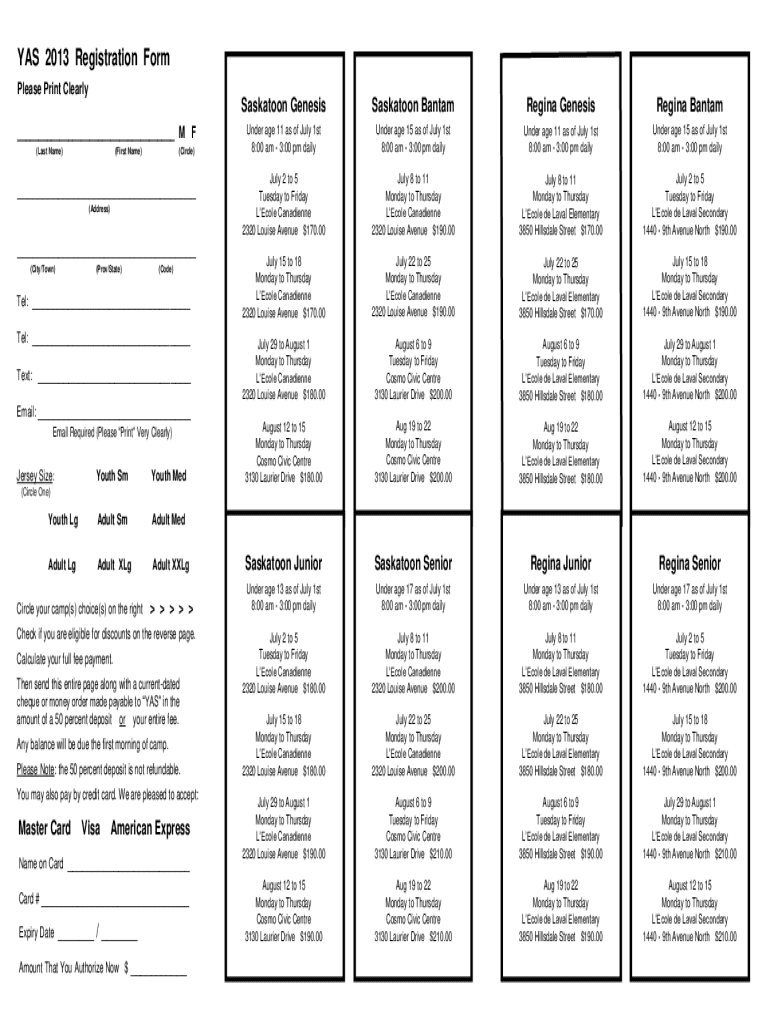 Get the free Yas 2013 Registration Form
