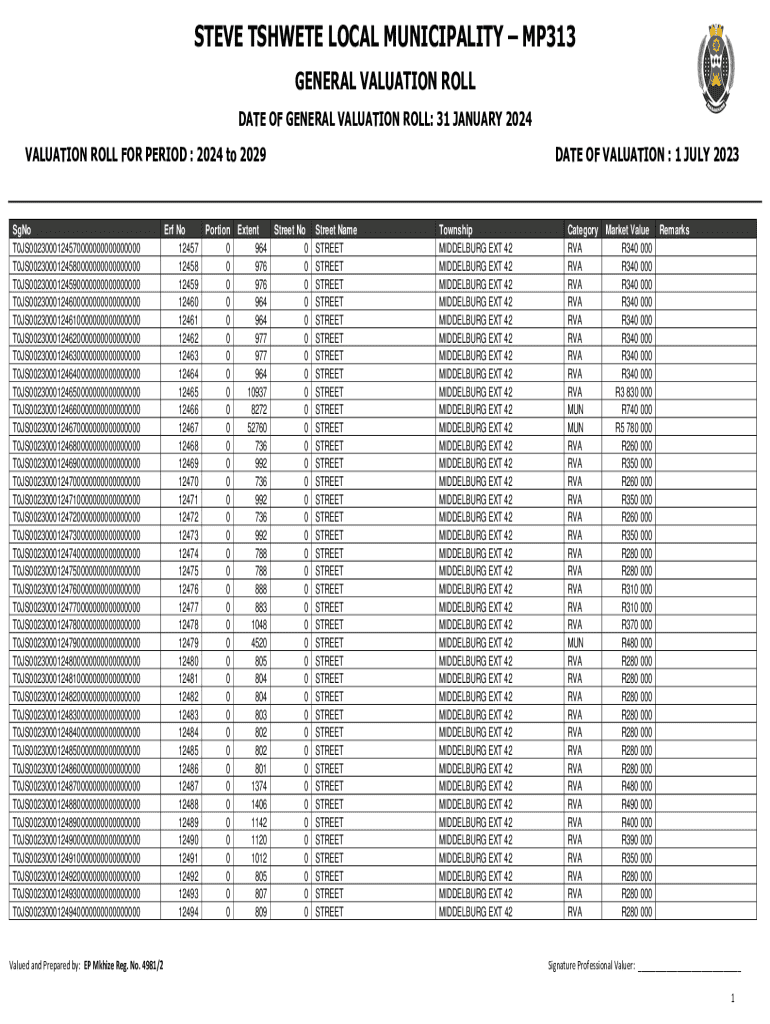 Get the free General Valuation Roll of Steve Tshwete Local Municipality