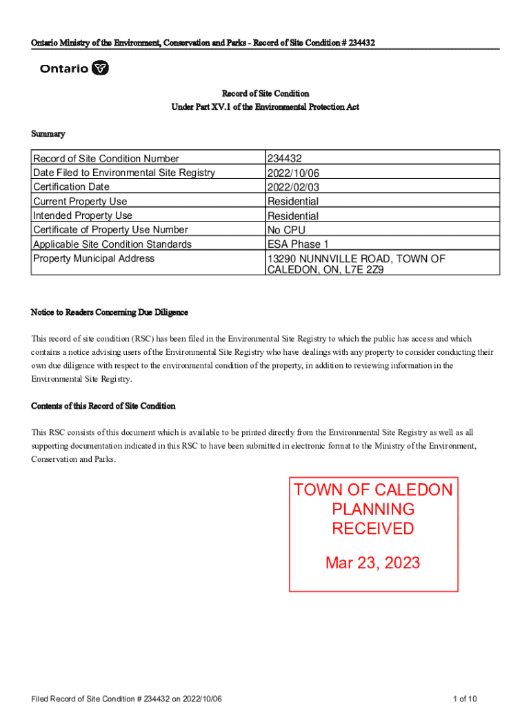 Get the free O. Reg. 153/04: Records of Site Condition - Part XV.I of the ...