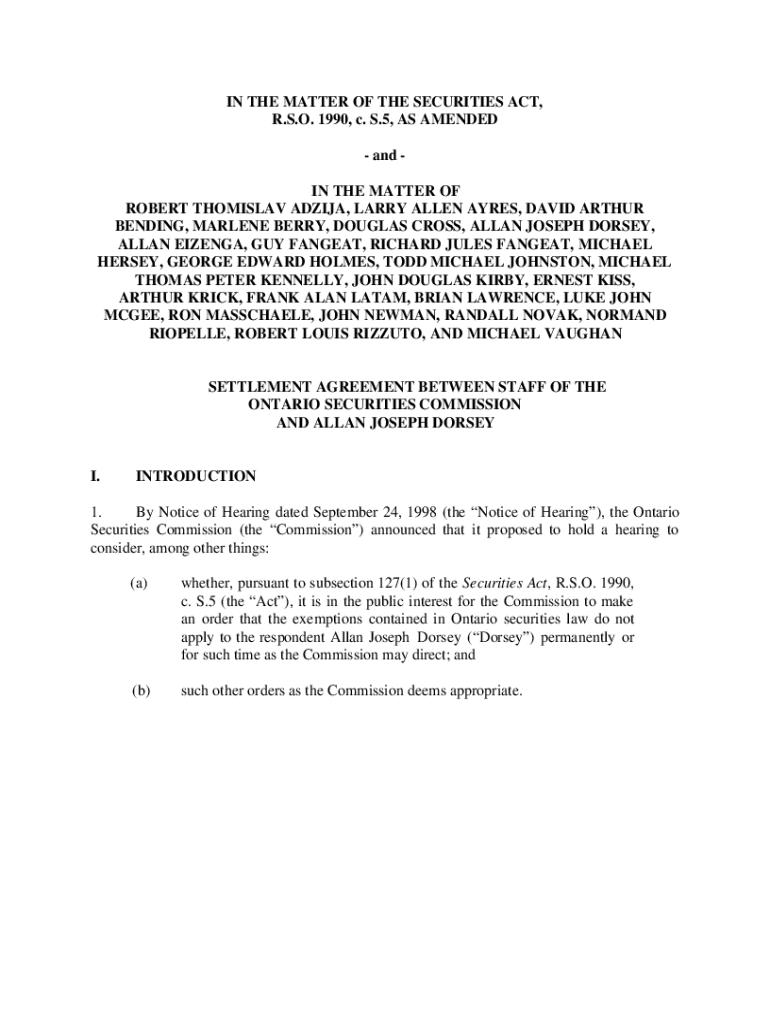 Get the free Notice of Hearing: In the Matter of David Arthur Bending et al.
