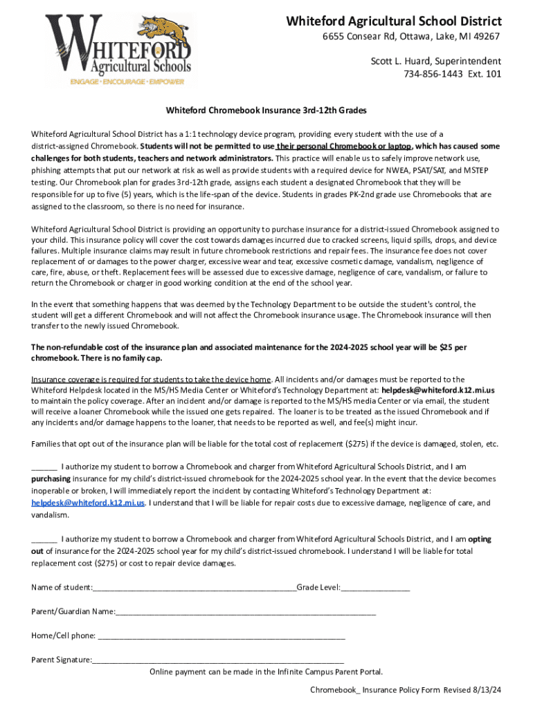 Get the free Chromebook Insurance Policy Form