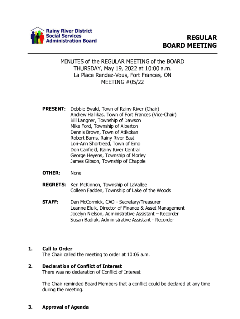 MEETING #05/22PRESENT:Debbie Wald, Town of Rainy River