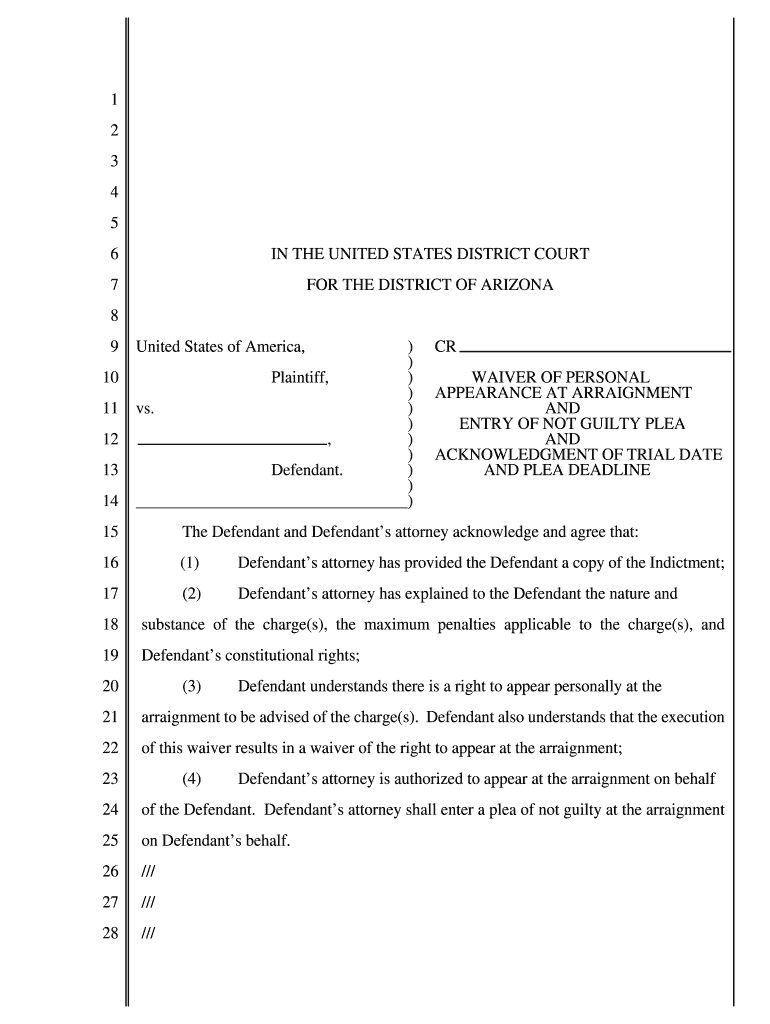 Get the free N: Waiver of Appearance at Arraignment.wpd - District of Arizona - azd uscourts
