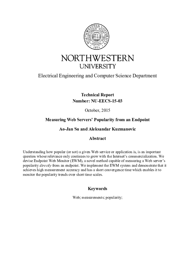 Electrical Engineering and Computer Science DepartmentTechnical Report Number: NUEECS1503 October, 2015 Measuring Web Servers Popularity from an Endpoint AoJan Su and Aleksandar Kuzmanovic Abstract