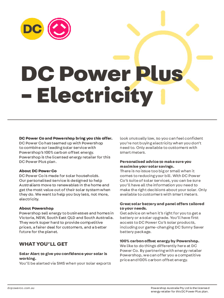 DC Power Plus Electricity DC Power Co and Powershop bring you this offer. DC Power Co has teamed up with Powershop to combine our leading solar service with Powershops 100% carbon offset energy. Powershop