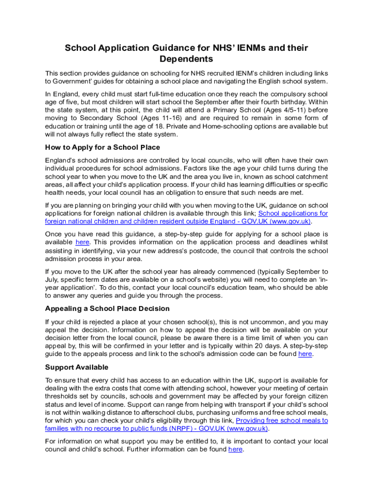 Get the free School Application Guidance for NHS' IENMs and their ...