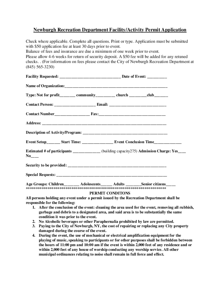 Get the free Newburgh Recreation Department Facility/Activity Permit ...