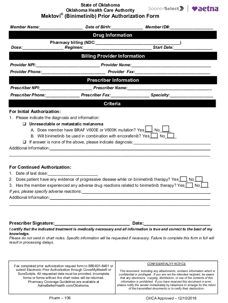 State of Oklahoma Health Care AuthorityMektovi (Binimetinib) Prior Authorization Form