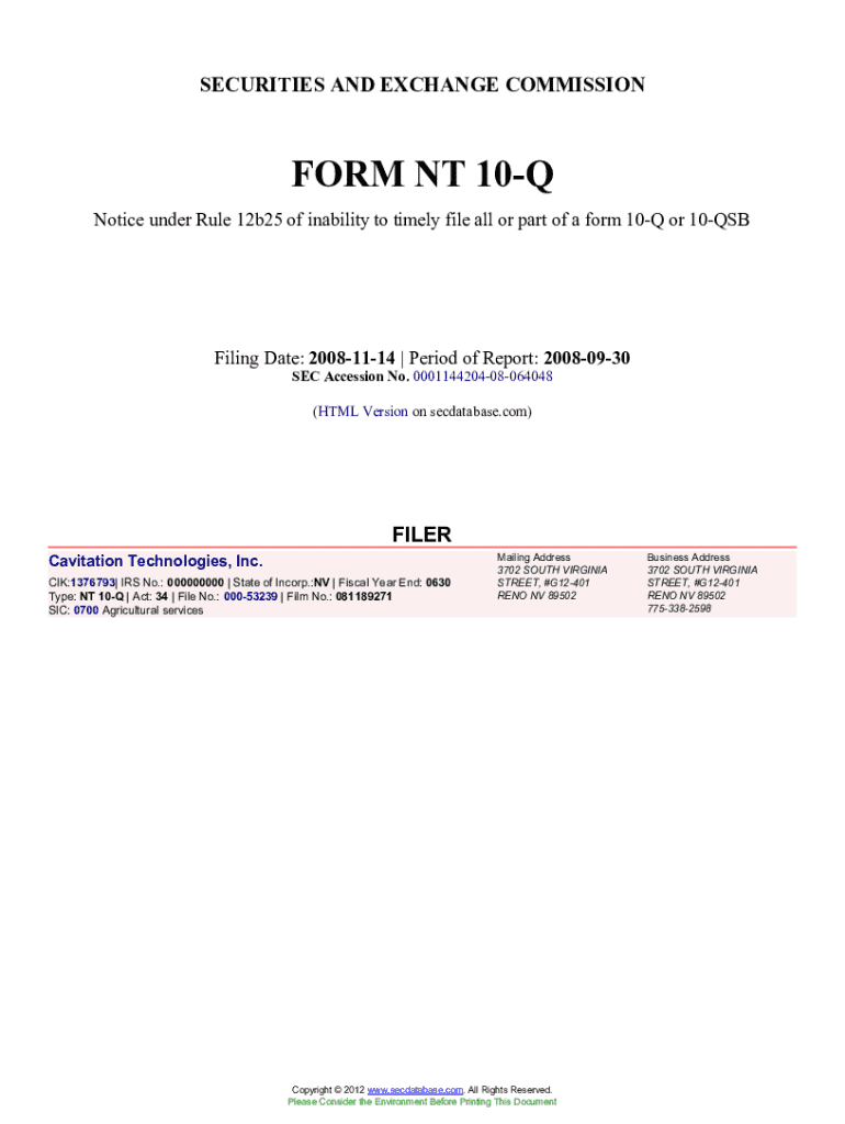 Get the free Cavitation Technologies, Inc. (Form. Accession Number