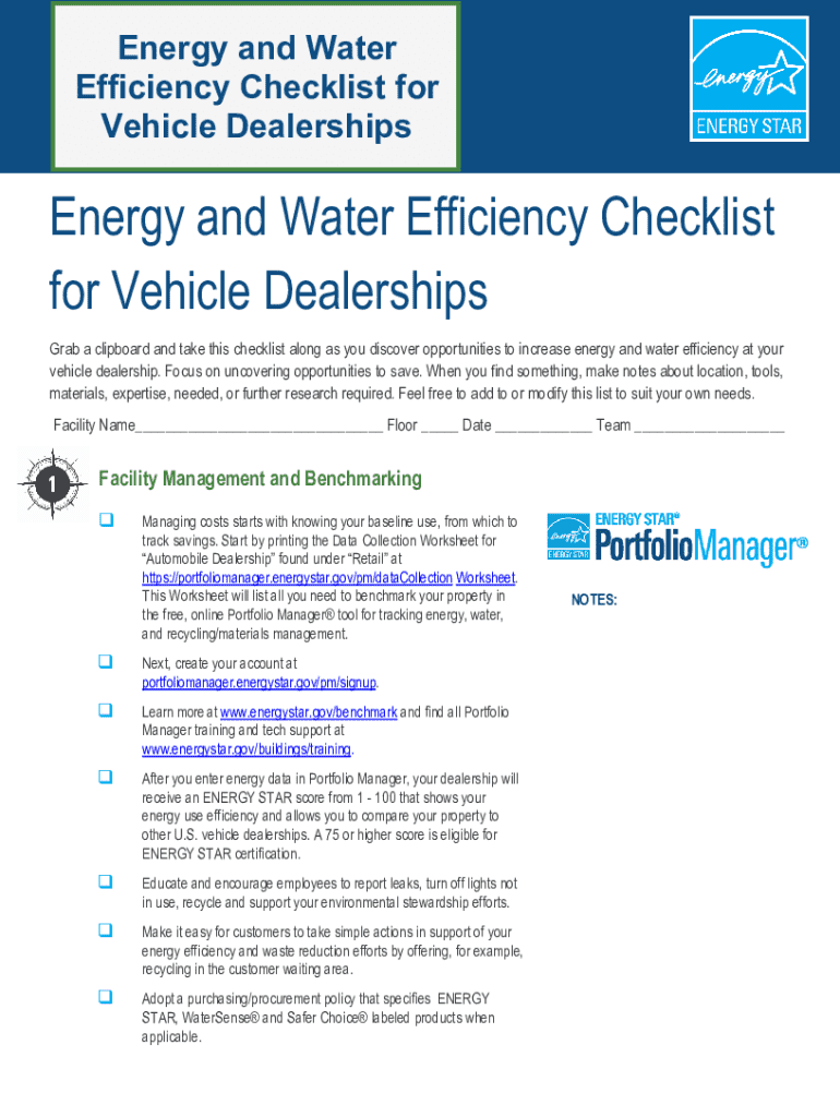 Get the free Energy and Water Efficiency Checklist for Vehicle Dealerships
