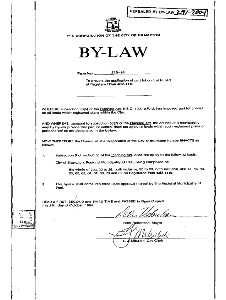 Fill out your by-law no 215-94 online with pdfFiller!