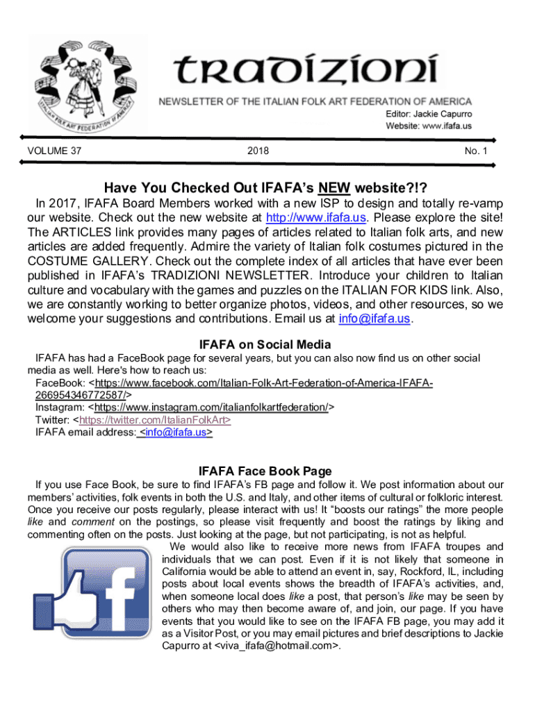 VOLUME 372018No. 1Have You Checked Out IFAFAs NEW website?!? In 2017, IFAFA Board Members worked with a new ISP to design and totally revamp our website. Check out the new website at http://www.ifafa.us.