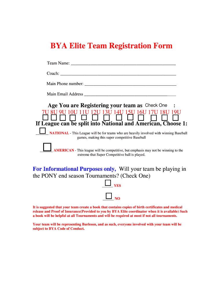 Get the free BYA Elite Team Registration Form - bya
