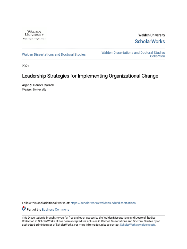 Get the free Leadership Strategies for Implementing Organizational Change - scholarworks waldenu