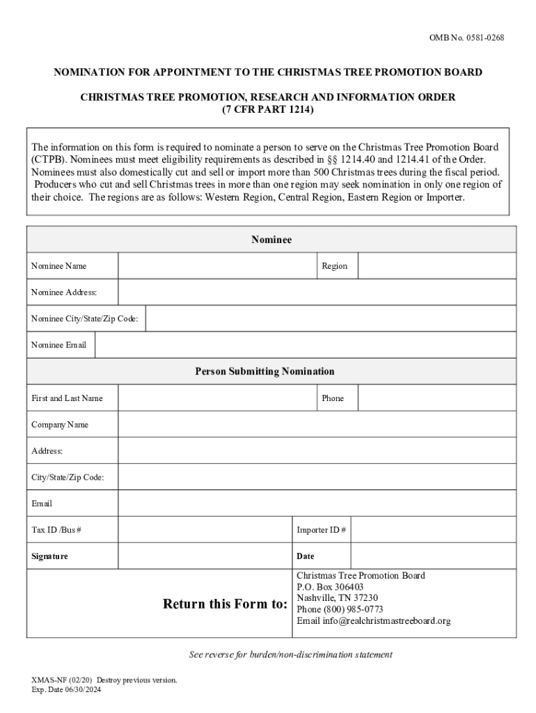 Get the free Nomination for Appointment to the Christmas Tree Promotion Board