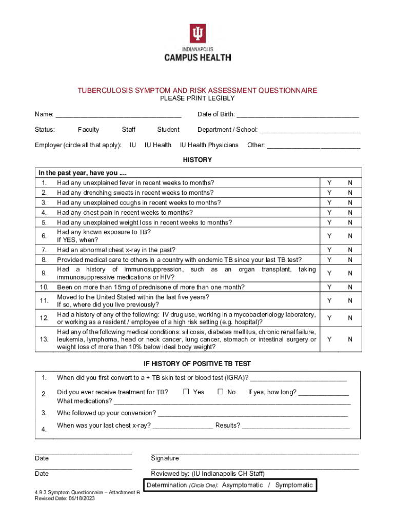 Get the free Tuberculosis Symptom and Risk Assessment Questionnaire